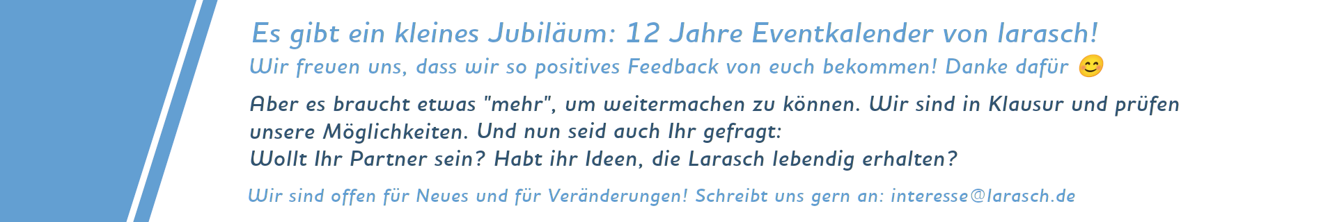 Deine Hinweise zu den Wettkämpfen schicke bitte gern an: event@larasch.de.